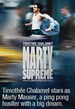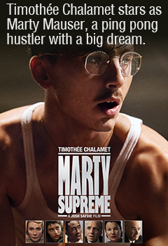 Timothée Chalamet is back on the big screen in Josh Safdie’s ping pong epic MARTY SUPREME, playing Marty Mauser, an up-and-coming table tennis star fighting for a dream no one respects. In 1950s NYC, young hustler Marty Mauser (Chalamet) believes he has ... more
